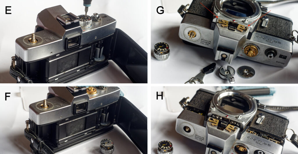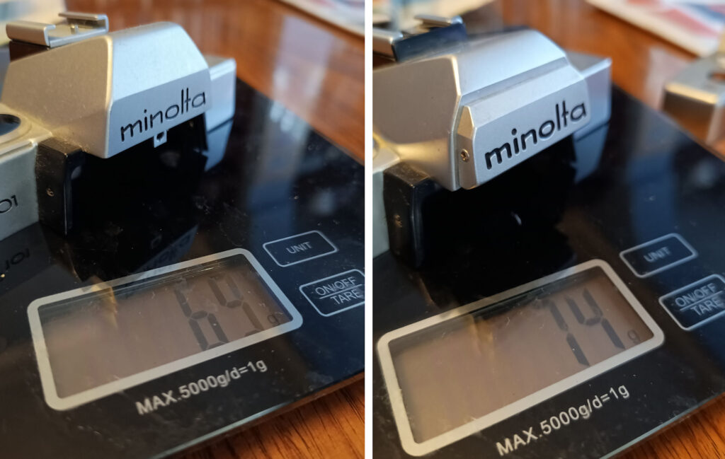 Having the camera apart also meant I had the opportunity to do a proper comparison of a 303 and a 101 top-plate – I’d mentioned in previous articles how the top-plate of the 303-type cameras was stronger and appeared to be built with heavier-gauge metal – and now I could quantify that using scales and a micrometer!