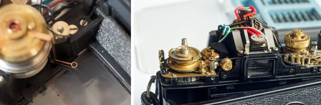 Any mechanical computer is subject to wear, but the scope for wear here is small. The cables are quite robust, and the pulleys are well-made. In contrast, the next generation of cameras used cutting-edge electronics. It is not uncommon to find that those more sophisticated exposure systems stop working because of the failure of a single component (and there can be lots of components). If you rule out accidents and misuse, those first generations of electronic cameras, dating from the late 70s and into the 80s tended to fail electronically rather than mechanically.