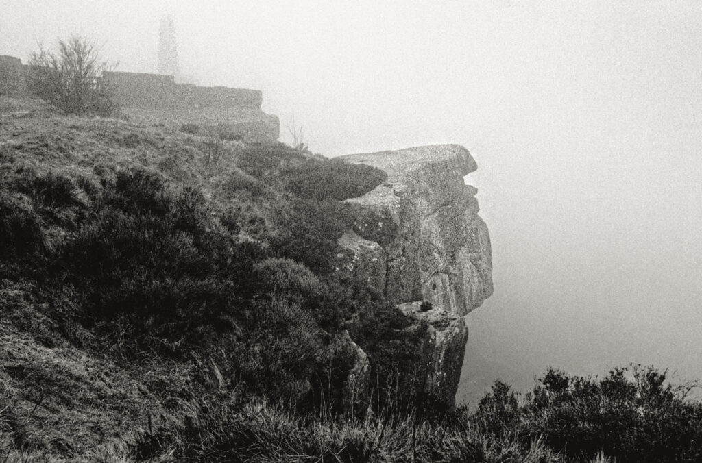My usual slow-paced attitude to making photographs was replaced by a hectic dash from one end of the crag to the other, fearful the fog would lift as quickly as it had arrived. Frantic lens changes and placings of my tripod at last brought me to the Pinnacle and as I made the last exposure, rain started to fall and the mist disappeared.