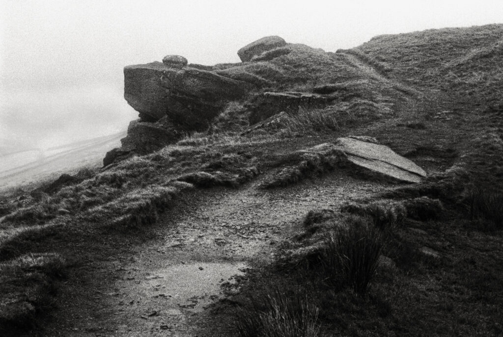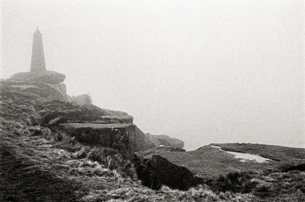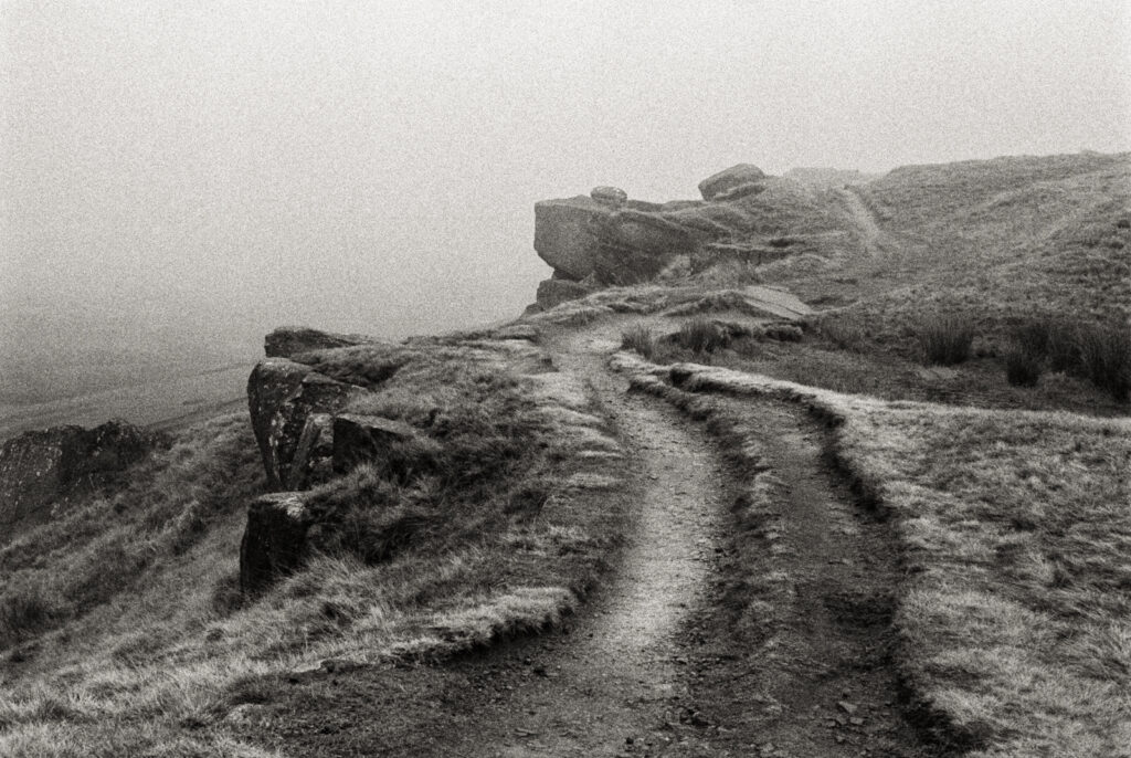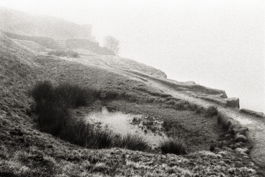 These images were made on my third visit with a camera in January 2026. The weather was windy and cold at 2 degrees C with low cloud – moody enough, but as I arrived a fog fell on the top; fog landscapes are one of my favourites. I was transported with delight!