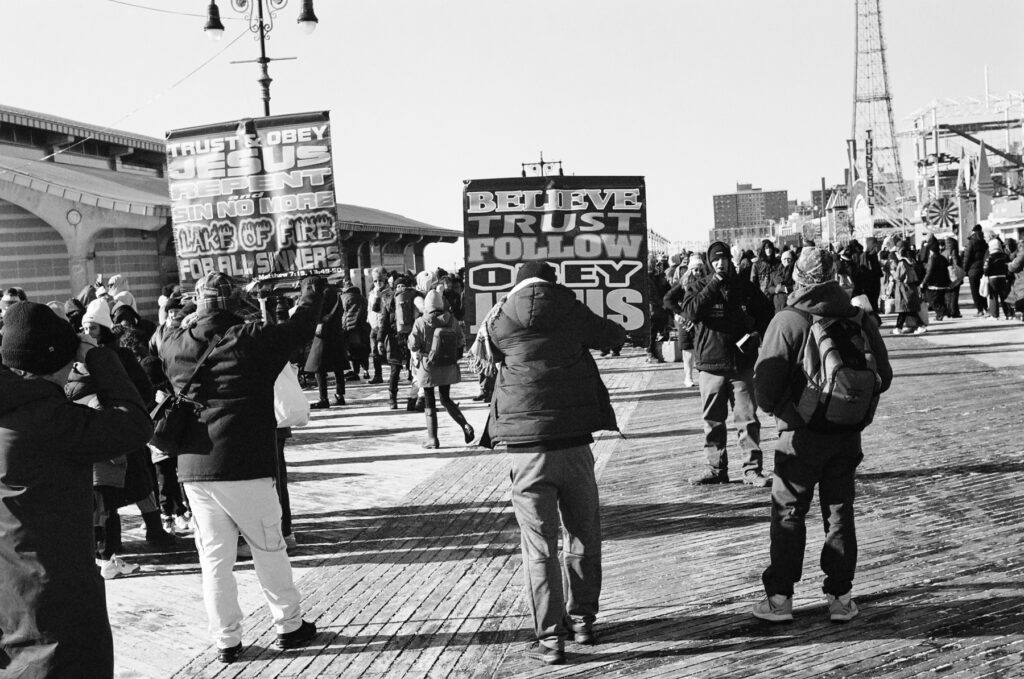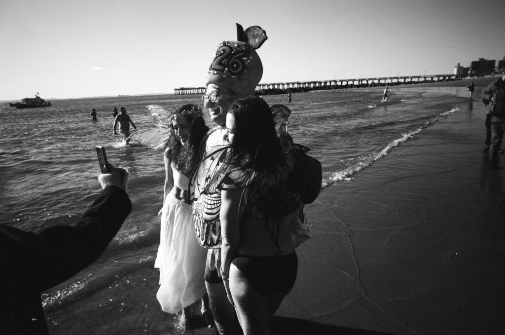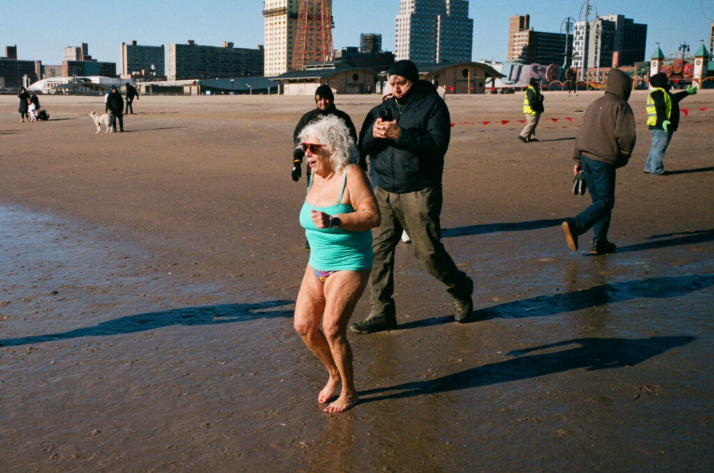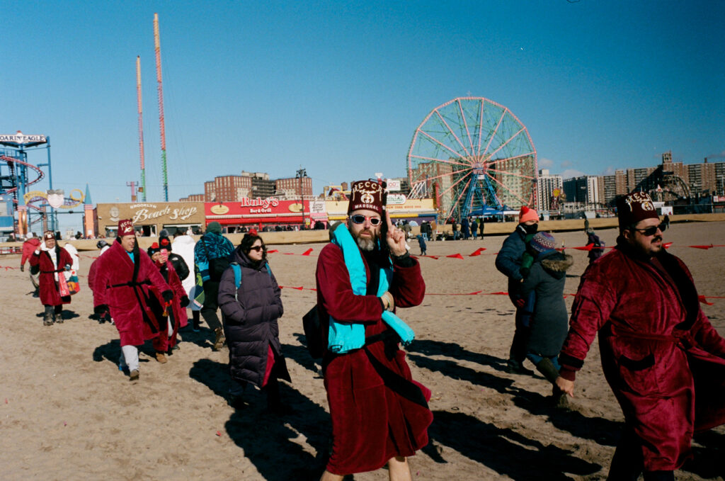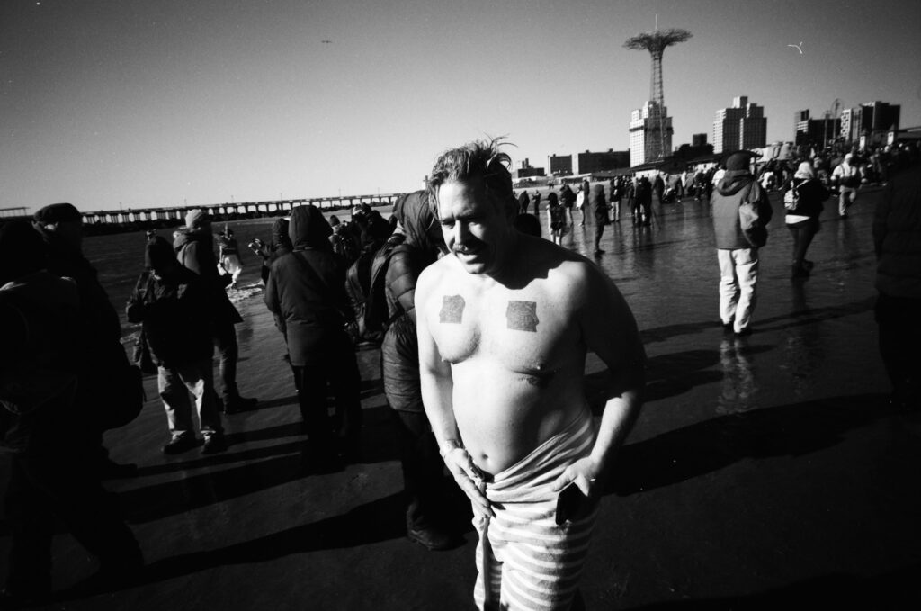 It was a bit intimidating to go out shooting with a photographer I admire so much and thinking about how much better his photos were probably gonna look than mine, not to mention his stellar writing on 35mmc.  On the way out to Coney Island, my mind was swirling over the right technical set up for such a dynamic/borderline chaotic event, not to mention having been up to about 2:30 am the night before ringing in 2026 with friends.  I had already settled on the Leica M as the right camera for the day.  With love, if felt a little dangerous to attempt using the the Hasselblad system in cold, frigid, sandy and wet conditions. I worried about fiddling with the gear more than shooting due to trying to keep it free of sand and water while trying to reload and swap film backs & lenses.  I figured if the M3 could handle the jungles of Vietnam, it was probably gonna be fine on a wintry beach in New York…