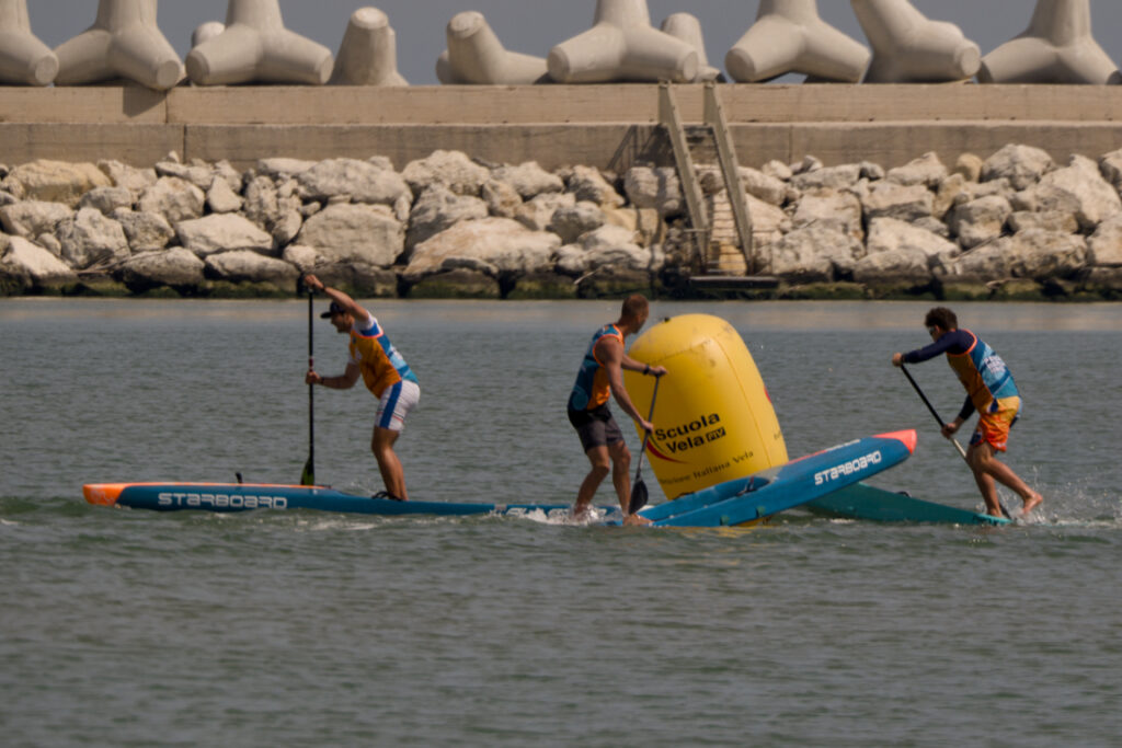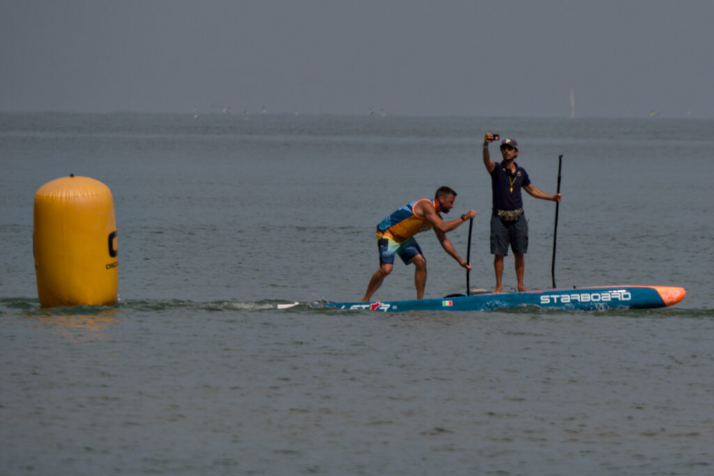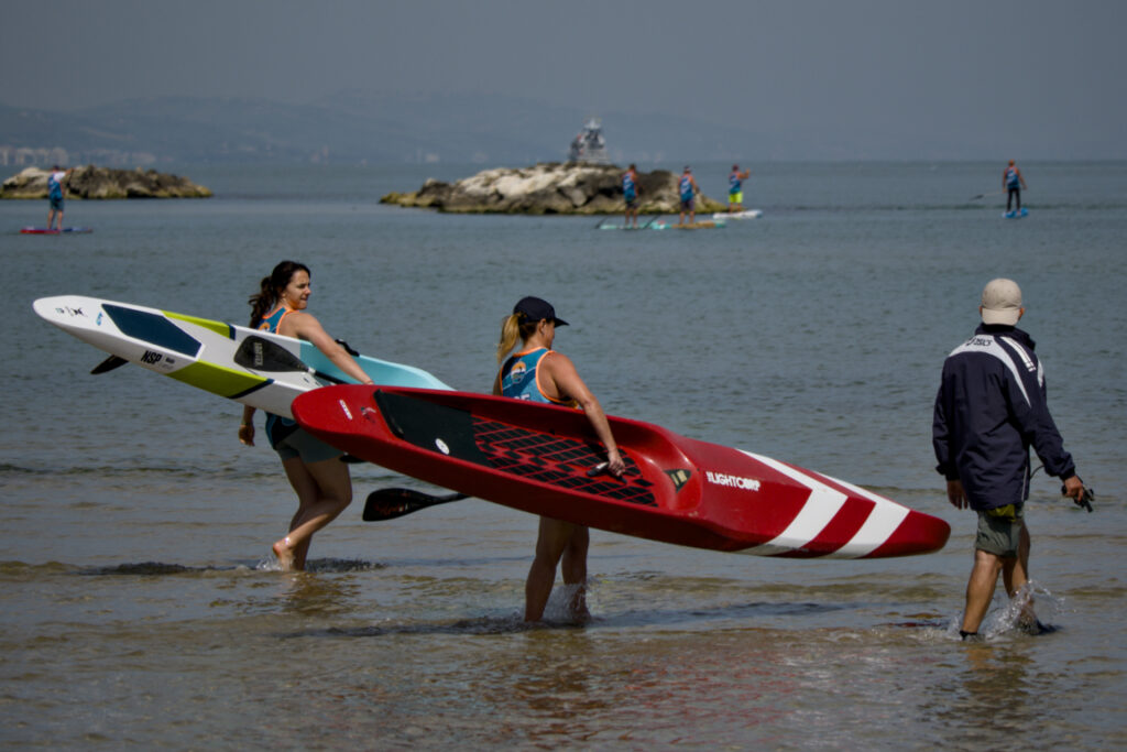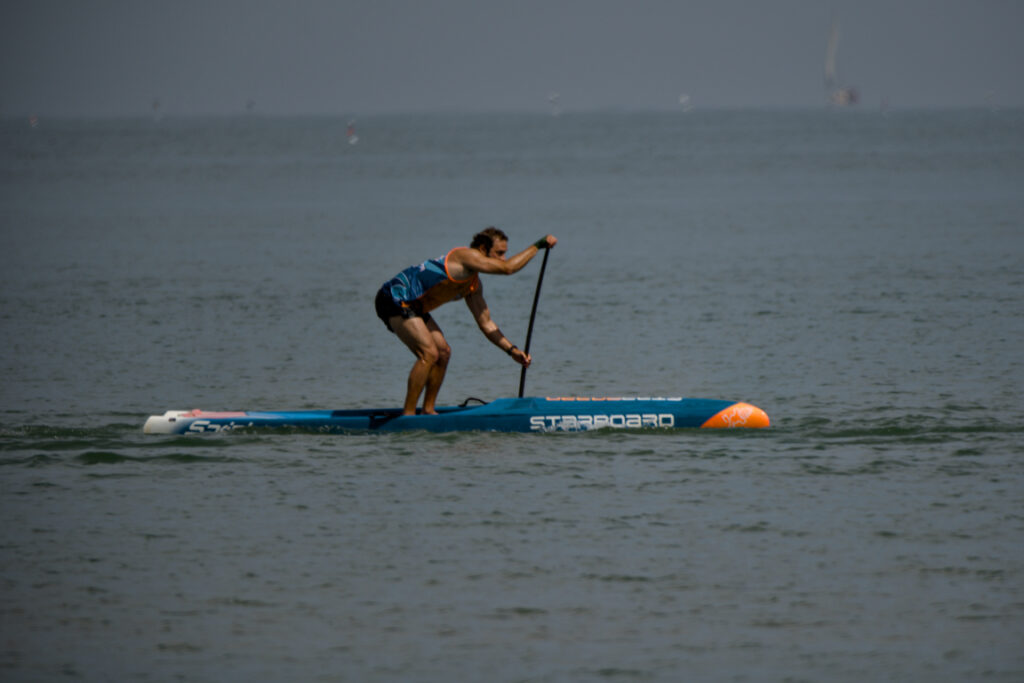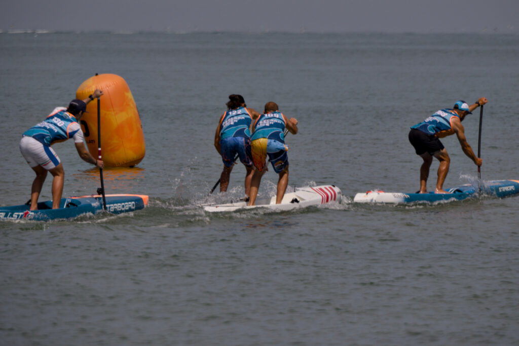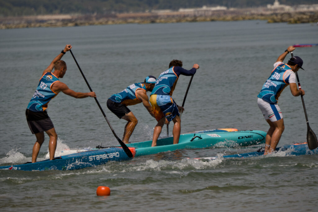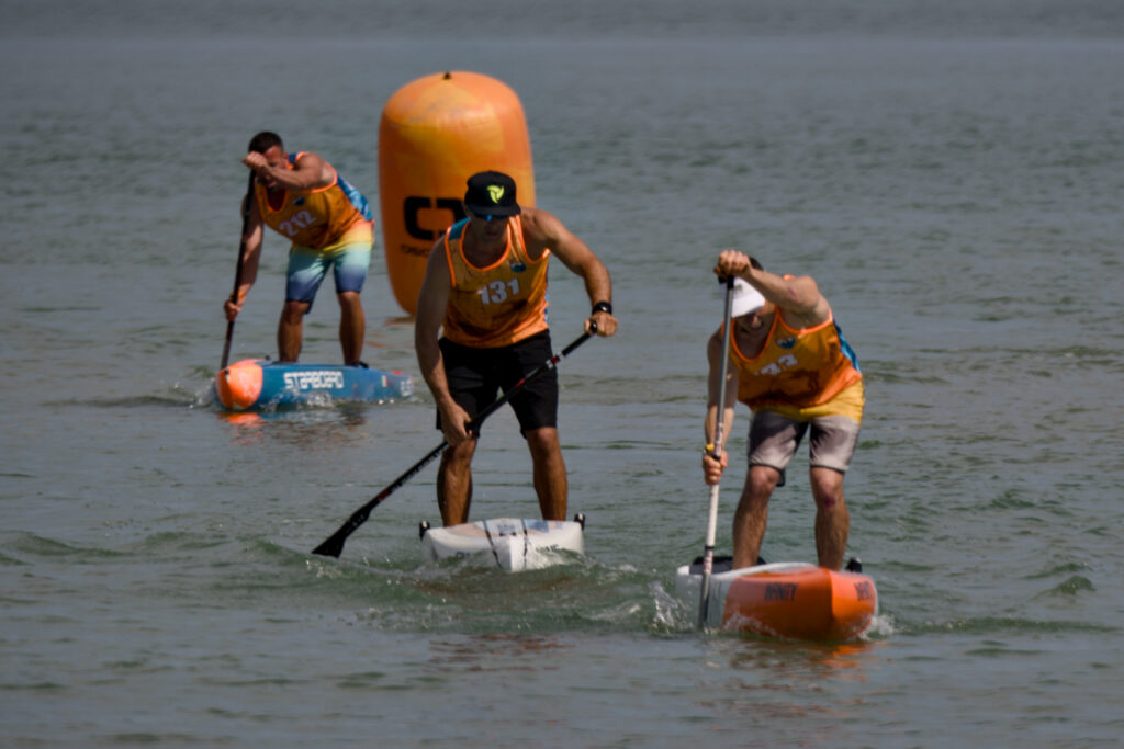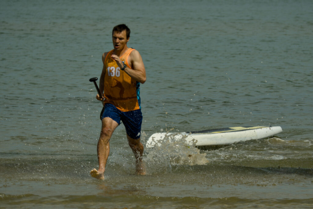 The first key moment in an SUP challegne is the start. Once the signal is given, the athletes start running a few steps in the water, pushing their boards.