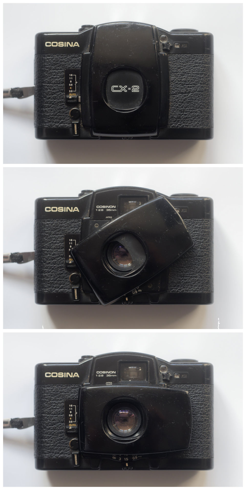 Even the sliding clamshell of the Olympus XAs hits a little switch that enables the shutter release – My XA2 (shown above) is a lovely example,but occasionally the shutter won’t fire and the clamshell needs to be closed and opened again before it will work. In such an environment, the rotating lens cover of the CX-2 seems quite robust. It is early days, but I haven’t sworn at it once.
