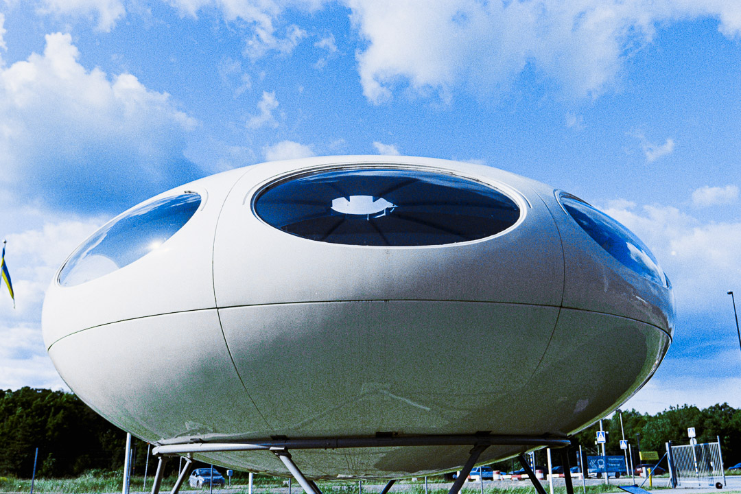 Another unusual object connected to the museum is the Futuro House, a fiberglass pod originally imagined as the vacation home of the future. Lightweight, mobile, and futuristic, it looks more like something that landed from space than a cabin in the woods.