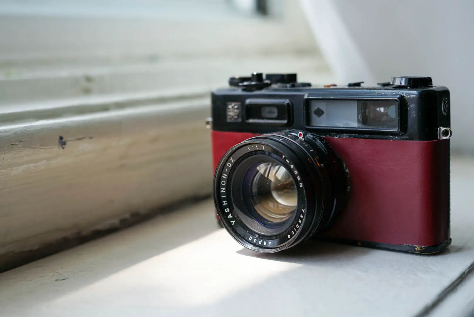 Now as you can tell from me purchasing a box of camera relics, I was in a pretty big case of gear acquisition syndrome of which I am slowly getting out of. It’s funny what one ruined roll of film can do to GAS. So while I had a box of cameras, I still went and purchased a Yashica Electro 35 GT, again from FB Marketplace. It didn’t cost me too much, it was black with some wear and tear on the corners, and I was looking forward to doing a little DIY by replacing the leatherette. It even came with a working battery and the guy threw in a Patterson tank. I was so excited. If only I had done some research before buying a dud, I would have been a bit better off.