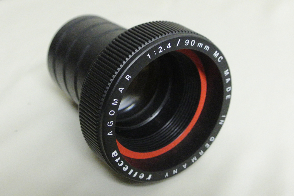The Reflecta Agomar 90mm F2.4 lens is made in Germany and features a 4-element construction. It should not be confused with the other Agomar F2.8 lens, which only has 3 elements and performs worse.