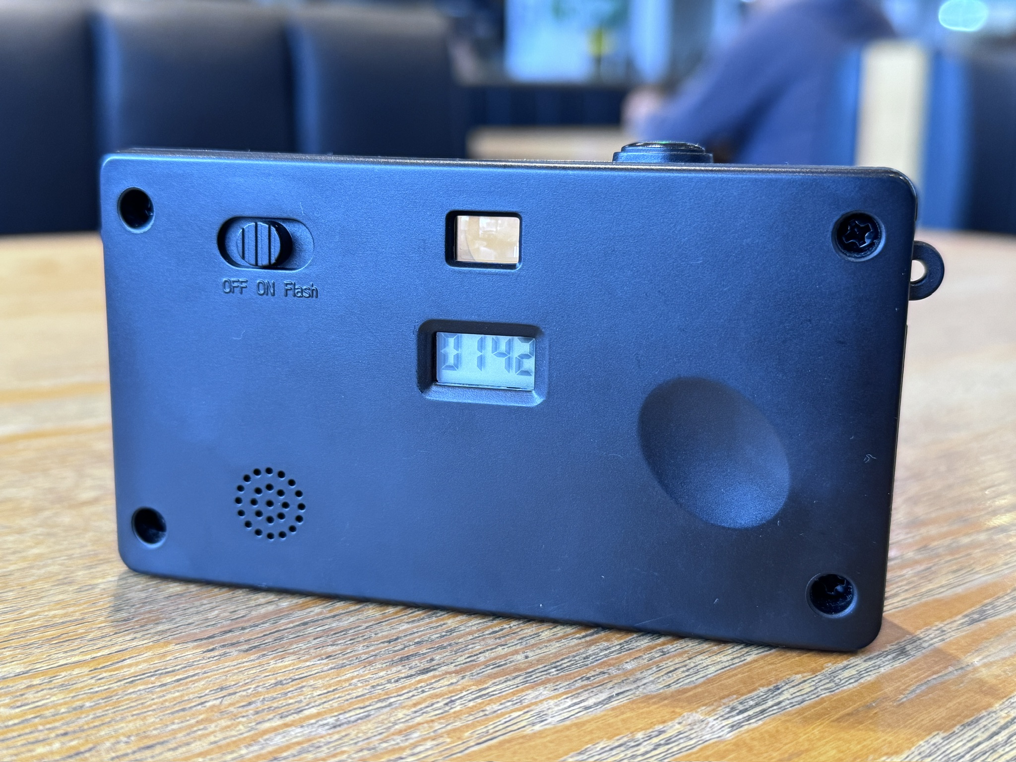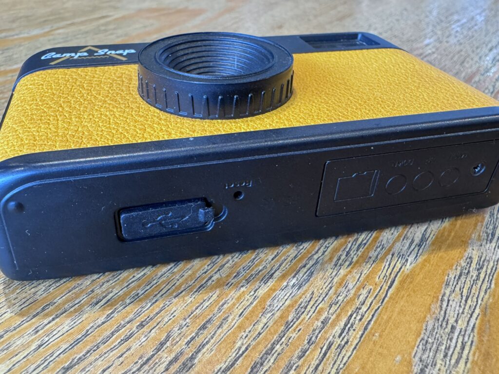 Straight out of the box, the Camp Snap readily gives itself away as the lovechild of a disposable film camera and a basic digital camera. There’s no screen at the back — the main feature that simulates the film photography experience. All you have to control the camera are the On/Off/Flash switch and the shutter button at the top. At the bottom, a screwed cover hides the buttons for mode setting, and the Micro SD card slot. Next to it are the reset button and the USB-C port for charging and transferring photos.