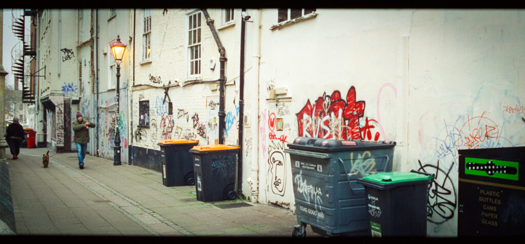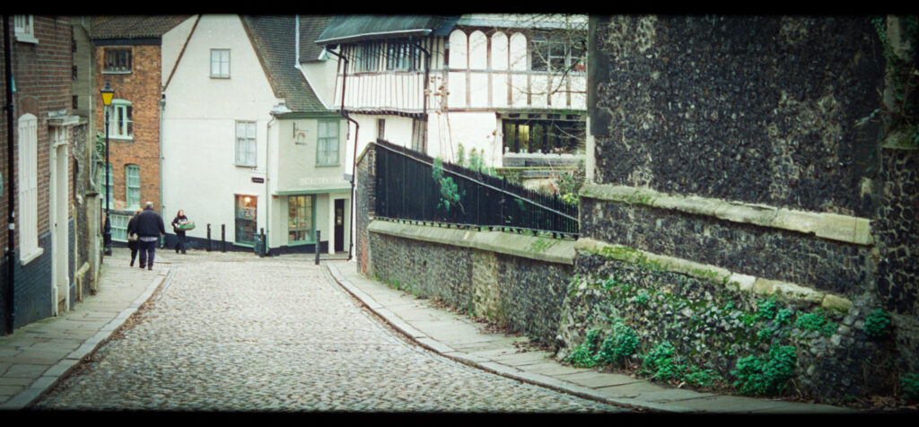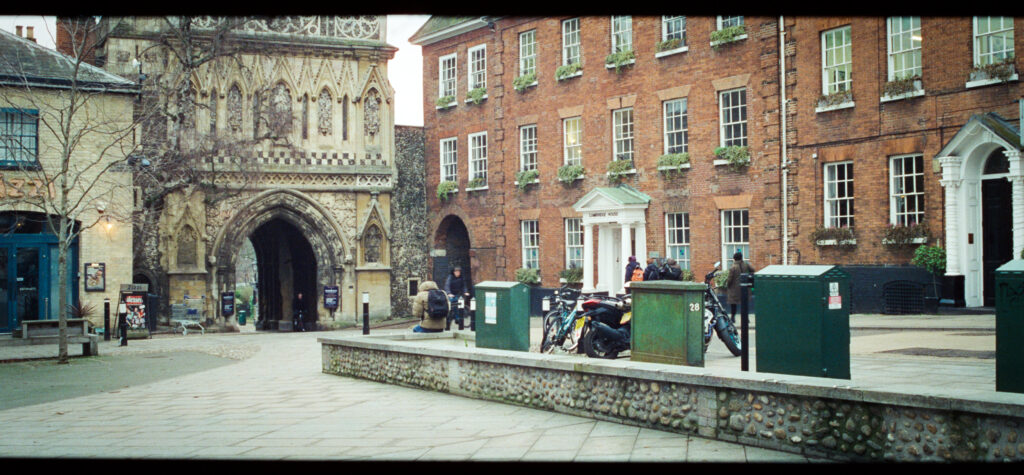 So I bought a roll of Kodak Ektar, but then I thought sod it, I’m going to use a roll of Cinestill 800T instead. This roll has been lying around for about a year and we were on our way to Norwich as the Missus had an appointment, the weather was dull so ISO 800 seemed right.