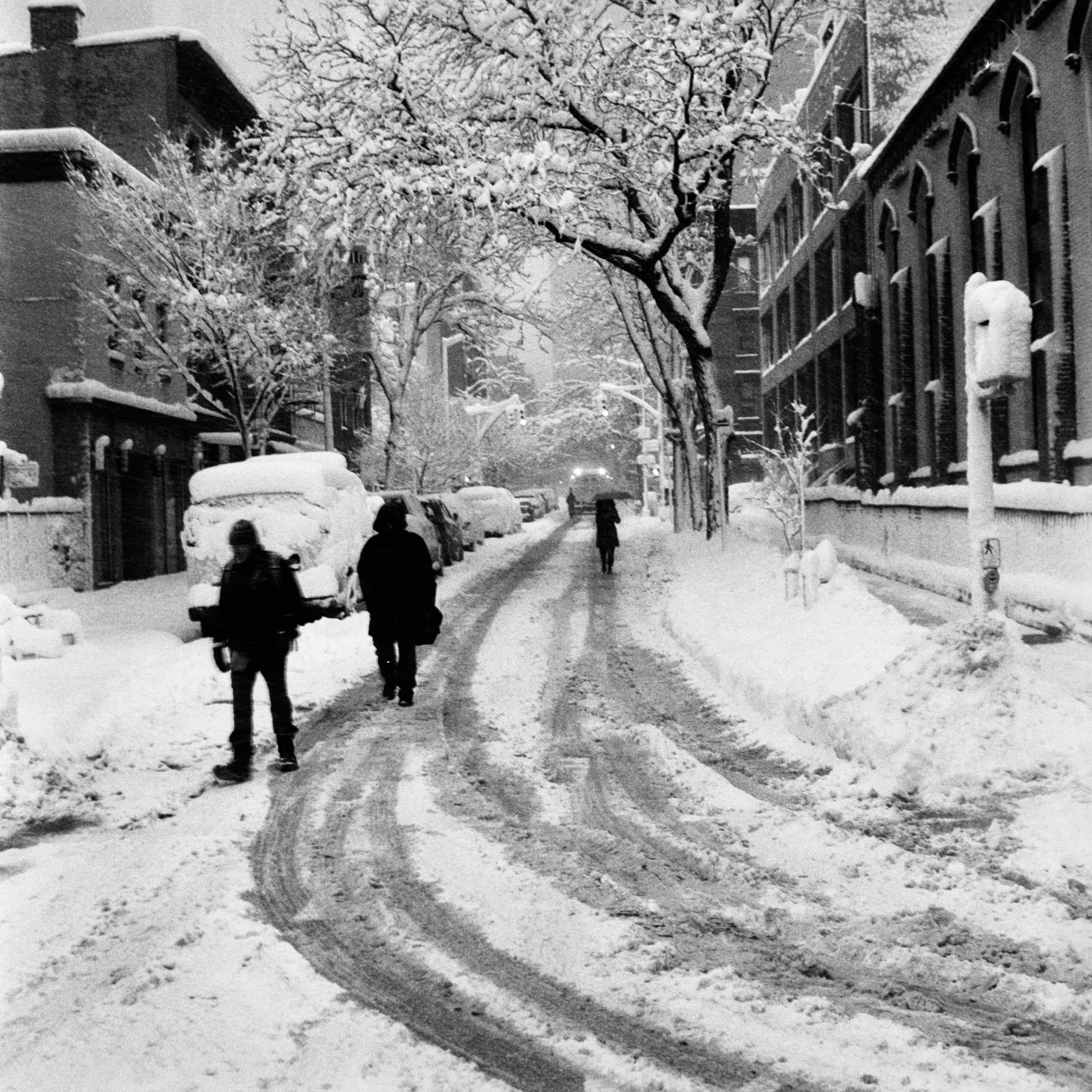 One of my fondest early memories as a New Yorker was a blizzard in the mid-1990s that brought the metropolis to a halt. My future husband and I were out with friends at a play and as we emerged from the theater we found the snow had risen from a few inches to nearly a foot (30 centimeters). Exiting a restaurant from dinner a bit later that night we discovered that the accumulation had nearly doubled, an epic transformation with no signs of stopping. The storm’s intensity grew in inverse proportion to the traffic, which, with the exception of a few stranded taxis, had by that point all but abandoned Manhattan. By midnight, we had a good-natured snowball fight with friends and strangers in the middle of Fifth Avenue, a spectral canyon carved between high-rises. Huffing home to our East Village walk-up through drifts three feet deep, we trudged through a silence so enveloping that it felt of a different epoch.