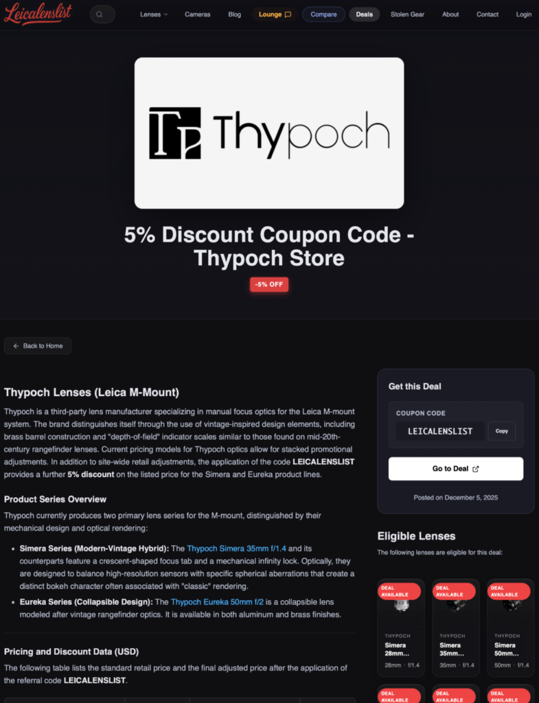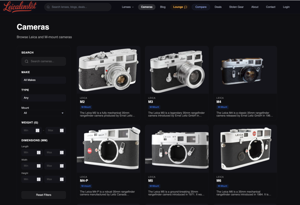 I also really enjoyed the Leica M system and decided I wanted to build a website to solve this pain point. This website is called