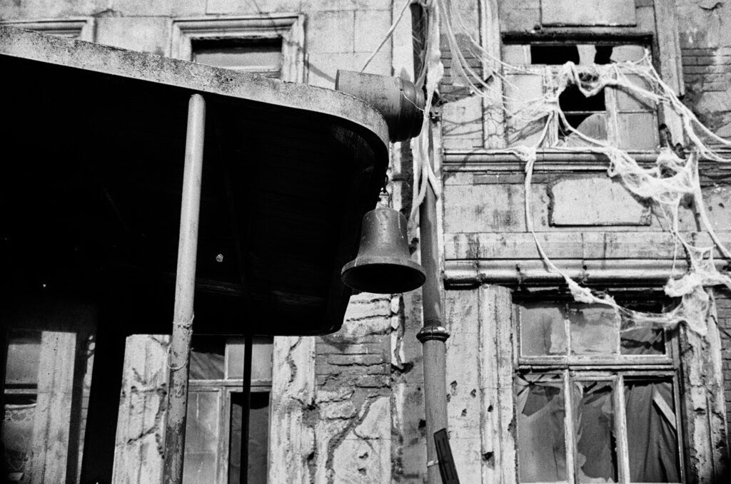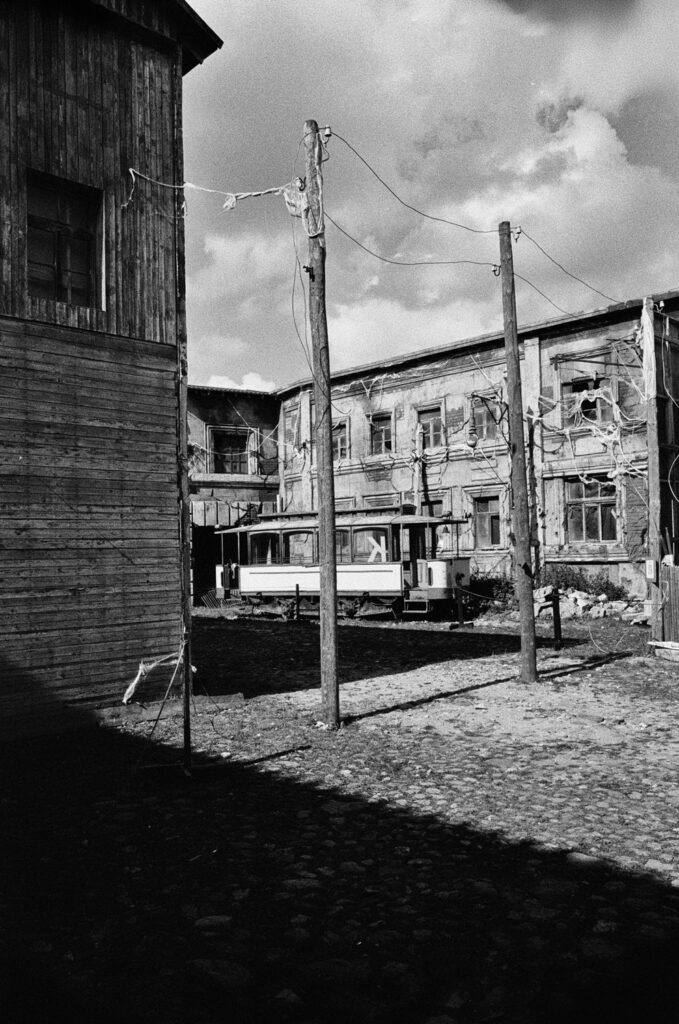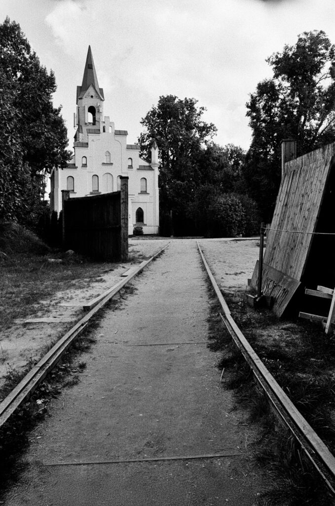 Cinevilla is located near the town of Tukums, about an hour from Riga, the capital of Latvia and the most populated city within the Baltic States. Cinevilla was built in 2004 for the Latvian film Defenders of Riga. It is an open-air film studio and backlot — a reconstructed 20th-century Riga with streets, houses, tram lines, a river crossing, and even a bridge. Father Time waits for no one, and Cinevilla is no exception. Over time it has decayed in parts, giving it an abandoned atmosphere. This is perfect for black and white film photography. The combo of the Nikon FE2 and Nikon 28mm f/2.8 AIS creates strong tonal contrast. The Nikon 28mm f/2.8 AIS is my favorite lens.
