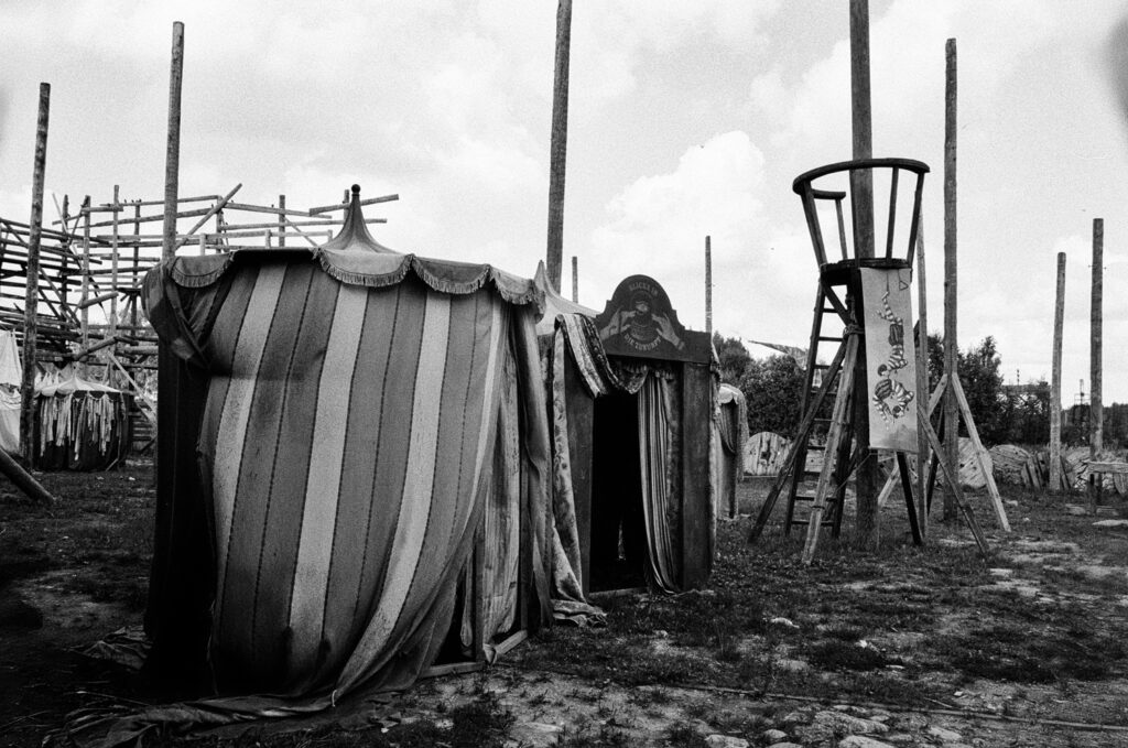 Thomas Wolstenholme on Cinevilla in Black and White: Shooting the Nikon FE2, 28mm f/2.8 AIS, and Kodak 400TX in Latvia’s open-air film studio