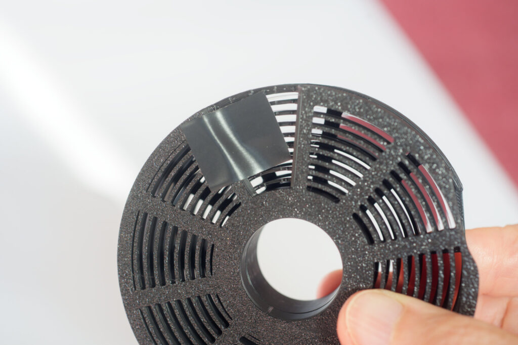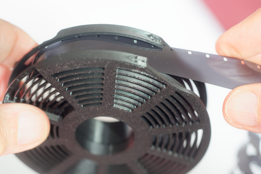 The reel has an open section (just above the thumb holding the reel) which allows you to touch the edge of the film – as well as simply pushing the film into the reel, you can feed it in by holding the edges of the film through this section