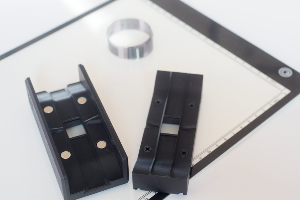 The two parts of the 110 base plate – The stage on the left and the lid (upside down) on the right. The two parts are held together with magnets.