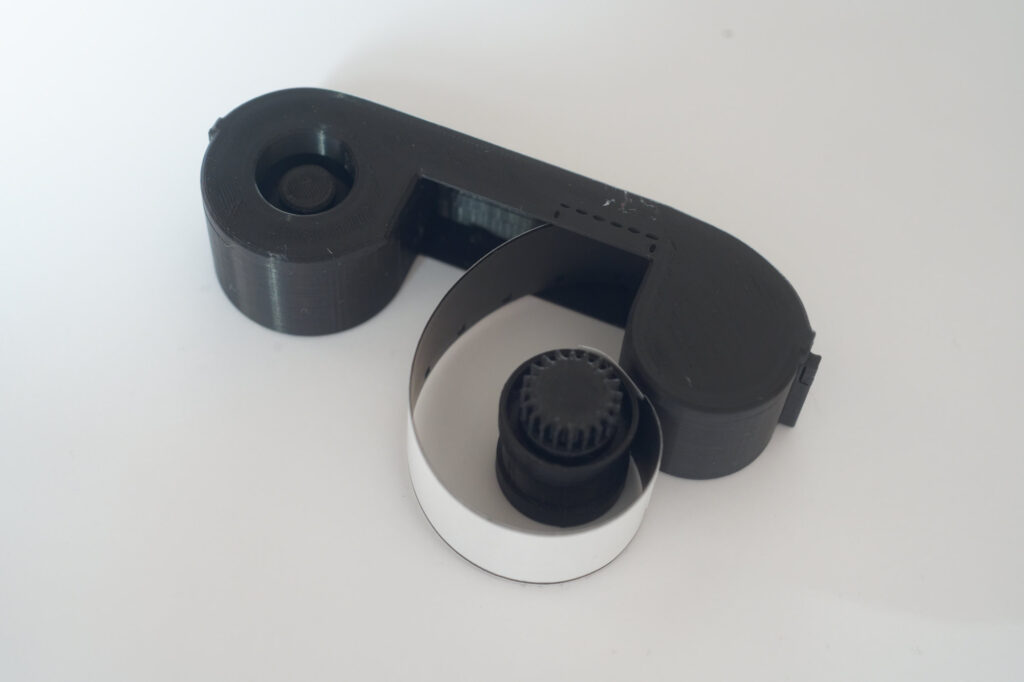 • The backing paper for 110 film does more than just protect from light. As the film is pulled along with the backing paper, there is very little movement between the surface of the film and the backing paper, while the outer surface of the backing paper is dragged against the inside of the cartridge. If you don’t have backing paper, the outer surface of the film is dragged against that surface and could pick up surface scratches, which was one of the reasons I lined my converted cartridge with a length of static backing paper. The 3D-printed surfaces do seem to be quite smooth, so this may not be a huge issue.