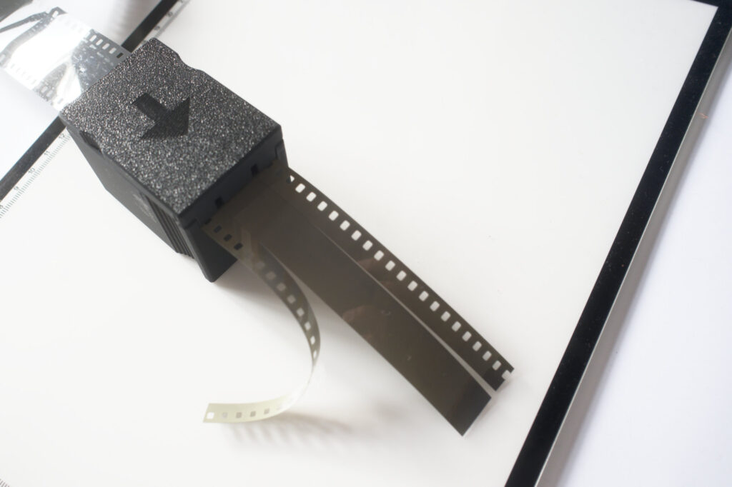 Film cutters – for 135 film on the left (with lid off) and for 120 film on the right