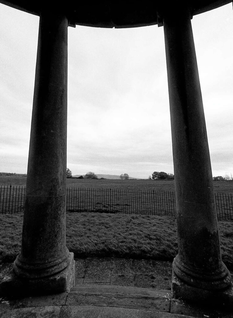 Fairly near where I live there is an observation tower that is under the care of the National Trust, part of the Croome estate, but because it is in the middle of a field a couple of miles away from the main house and park, it is rarely open; this year just 2 or 3 hours on four days of the year. One of those days was this month, so I decided to take a look, and I set myself the task of getting 5 images using some lenses I thought had not been used enough. I took along my Olympus OM4Ti which had a dozen frames left on a roll of Kentmere 200. The film was developed in ID-11 and scanned on an Epson V700 using auto levels.