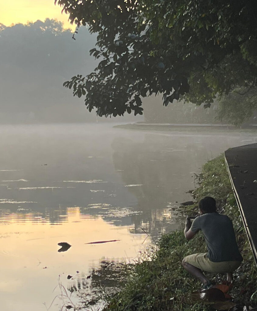 I have my fair share of monitor-lizard photos – sharp, well-exposed images with lots of detail. But last month, on a morning walk at a nature reserve, I saw an arresting sight. A rather large lizard was sitting half-submerged in the lake. Behind him, dawn was breaking, and a light mist lingered over the water. The apartment blocks in the background look almost insignificant. If nature took over the city, I imagine this is how it would be. The lizard is in his element.