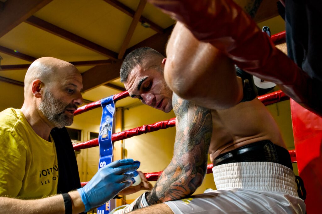 A chance that should not be missed is shooting what happens in the corner between rounds. Not only it allows to freeze moments of fear, pain, energy and confidence, but also gives the photographer precious hints to predict what is going to happen next.
