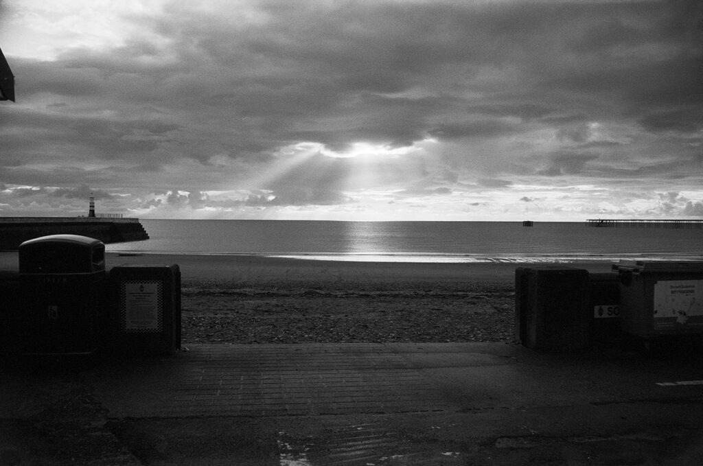To the Retina and the Kentmere 200 first, as this film stock seemed to really suit the conditions especially in the morning. There was less definition in some of the clouds than I recalled seeing, but a slightly painterly effect through the grain. Shooting straight toward crepuscular rays worked really quite well on a few occasions. The photo below is possibly one of my favourites from this roll.
