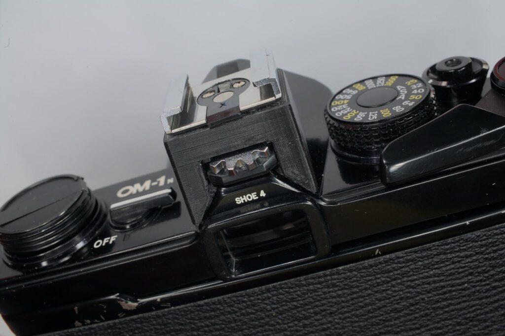 Anyway if you have an OM camera and a Shoe 4 with broken plastic, the STL files should allow you to fix it with a 3D printer. They won’t allow you to create a shoe from scratch because you need all of the metal bits from an original shoe.