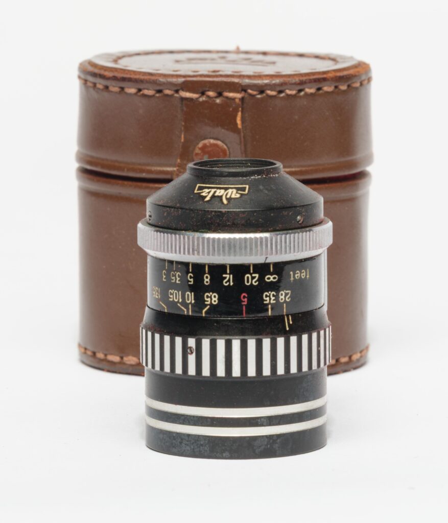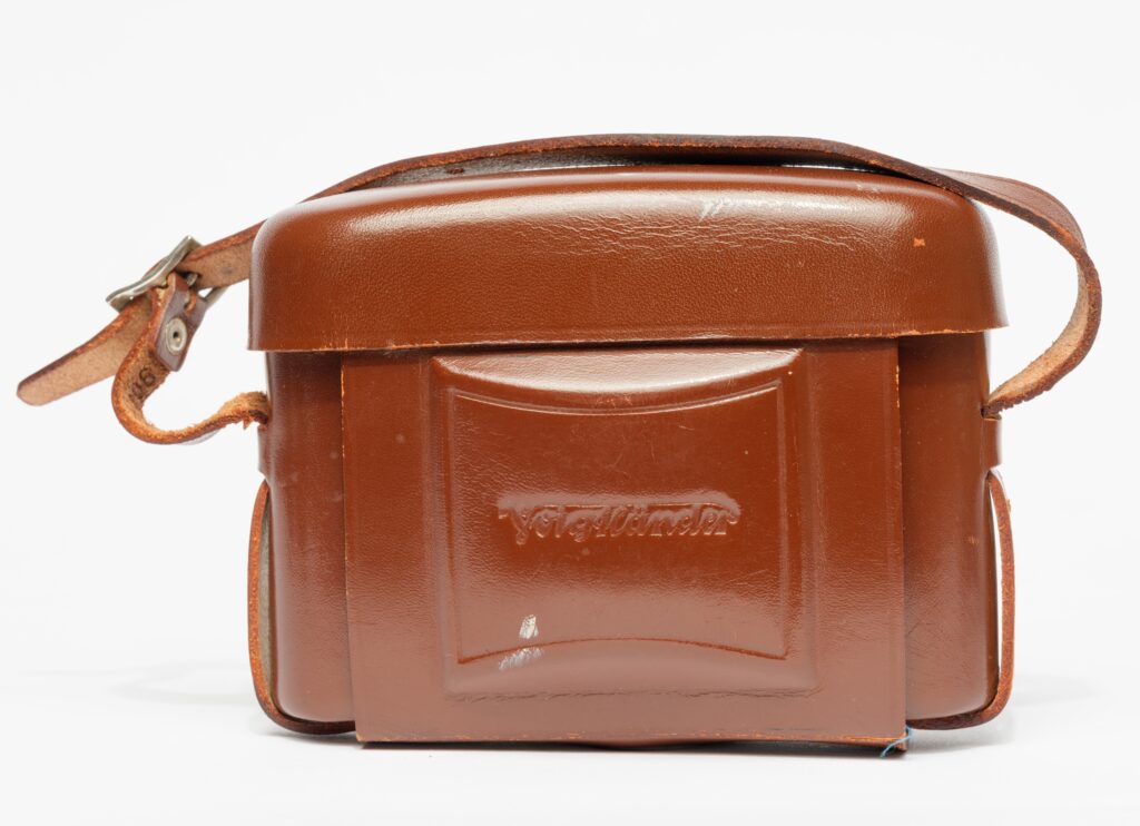 Digging further into the bag she lifted out a nice Voigtlander Perkeo I and two Nikkor S lenses, a chrome135mm from the 50’s and a 28mm. All the gear came in its original leather case which were in fine shape. There was even a cold shoe attachment viewfinder by Walz that zooms from 28mm up to135mm.”