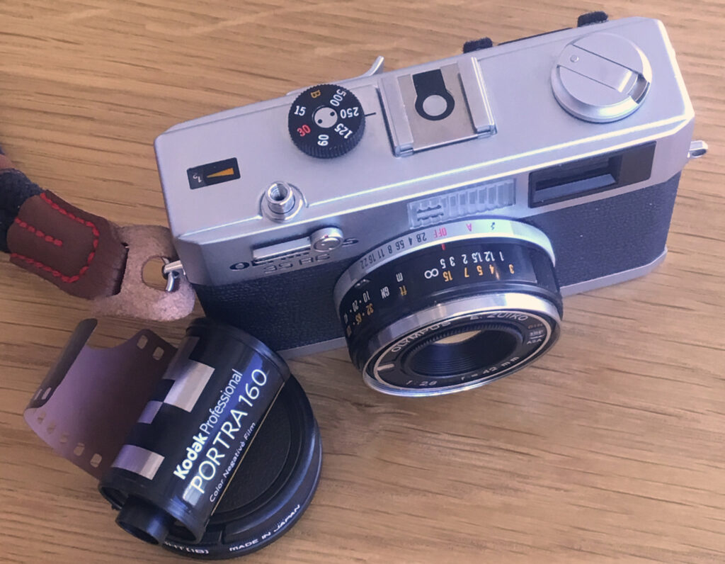 The Olympus 35 RC is a small fixed lens rangefinder with shutter priority auto-exposure, and the option for manual operation with or without the meter. It surely is one of the smallest full frame rangefinders. It is heavy for its size and “pocketable” for those with loose fitting attire. The meter function calls for a 1.35 volt battery, so I installed a 1.4 volt zinc-air hearing aid battery, and set the ASA to 125 (1/3rd stop lower than Portra’s 160). For simple snapshots while sight-seeing, I used this auto-exposure function. A half press of the shutter locks the exposure value, providing great flexibility.