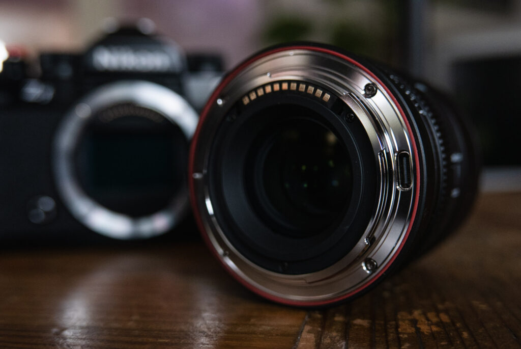 Starting at the base of the lens, it has a metal lens mount. As is often the case with 3rd part lenses these days, it also has a USB-C port for updating the lens firmware.