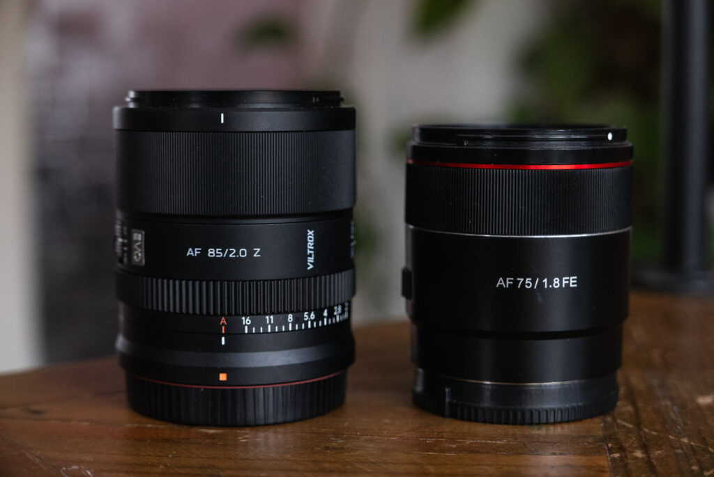 Before I get into this review, I have one last bit of context to talk about, and that’s my beloved Samyang 75mm 1.8. This lens was a revelation to me! It’s small, light weight, high optical quality… at least my copy is (apparently copy variance is a factor with these lenses). It’s a great lens, and when I swapped to Nikon from Sony having the adapter to allow me to carry on using it on the Nikon was a big deal to me. The 85mm f/1.8 was never going to replace it either. When I was reviewing that lens, I often thought about having the Samyang to fall back on. It’s not a perfect lens though. The AF is a bit shit (terrible for video), it doesn’t have an aperture control, and I found the button and mode switch on it pointless and annoying to the point I thought I would never use lens function buttons. But for its size and quality, I loved it and was convinced I wouldn’t sell it. This Viltrox 85mm f/2 has definitely convinced me otherwise… it has even converted me to the benefits of lens buttons! (More on that below). Let me know if you would like to buy my Sony mount Samyang 75mm…