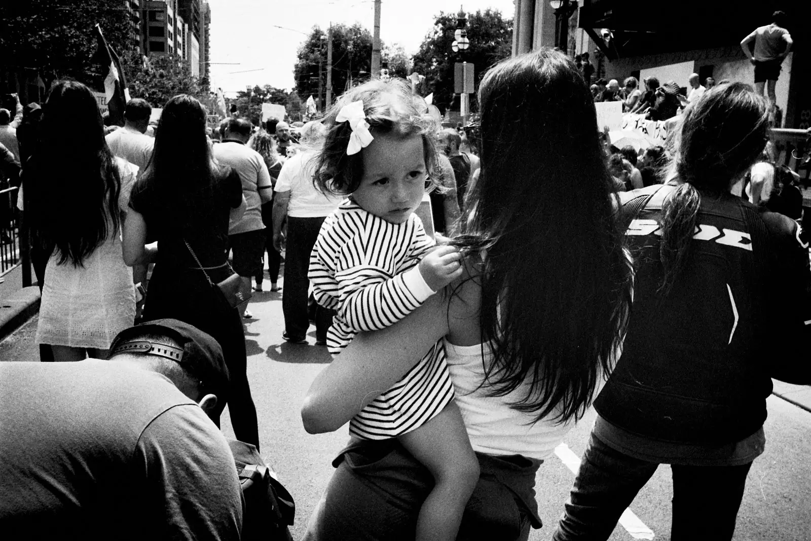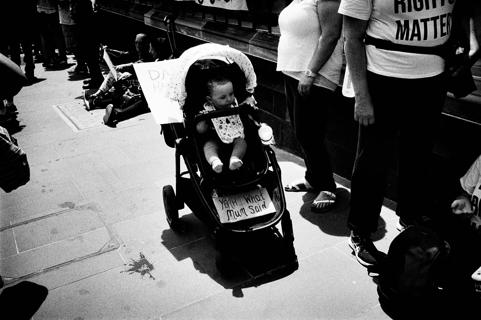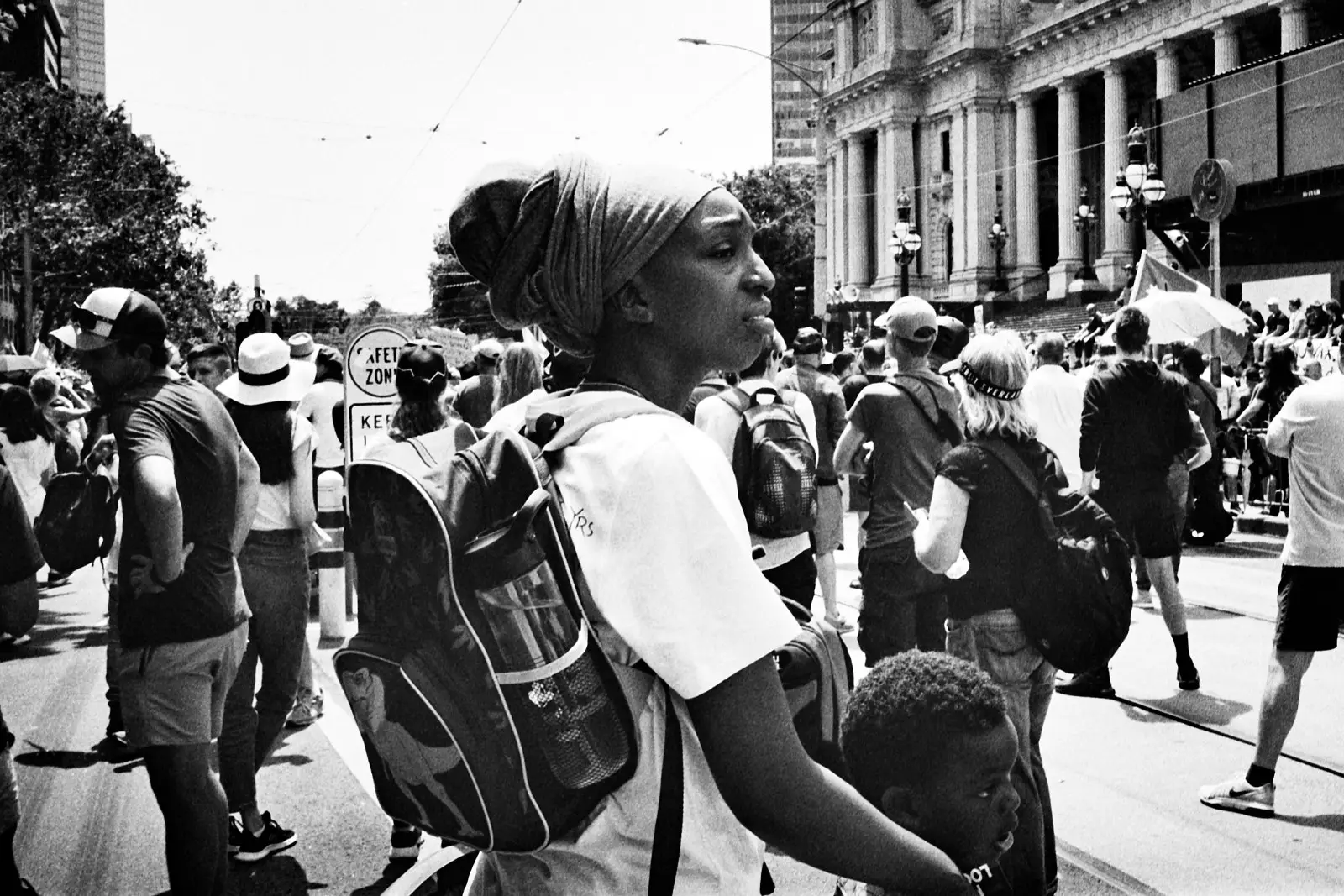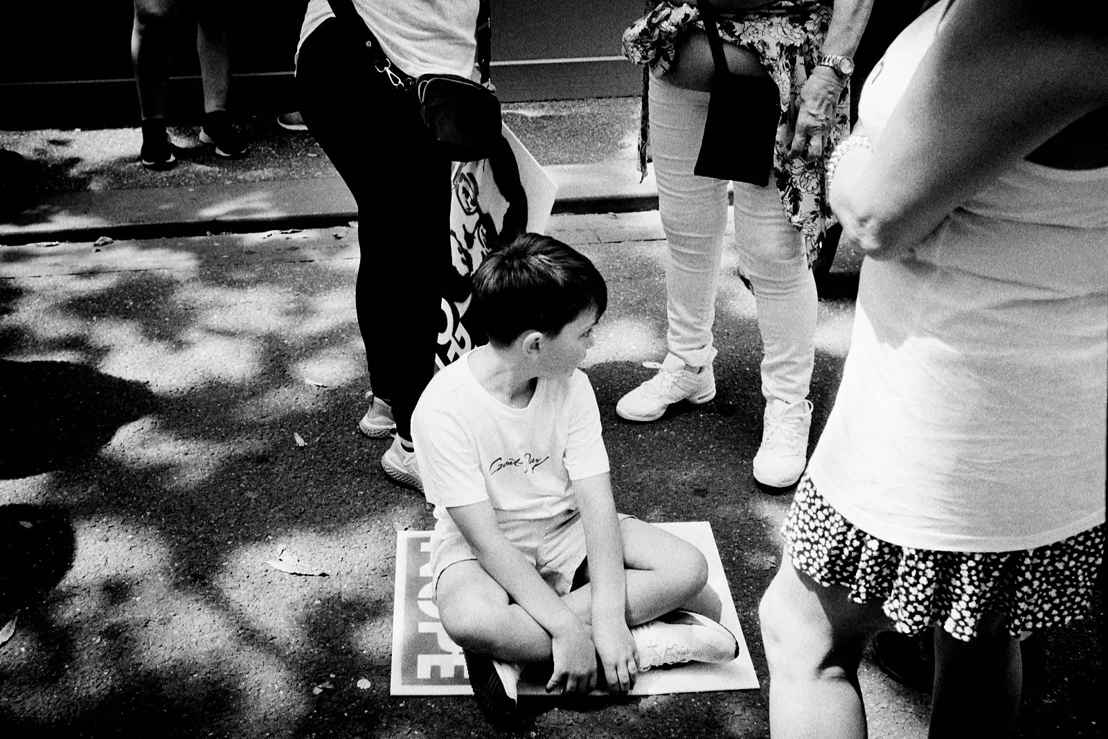 I bolted for a walk right after we arrived. We were staying in Georgetown, and like the tourist that I was, I wanted to go see the stairs where The Exorcist was filmed. This, of course, removed me from the perspective of my son. Suddenly I was a street photographer in a big city. I quickly set about photographing the backs of people’s’ heads and juxtaposing signs with other signs.