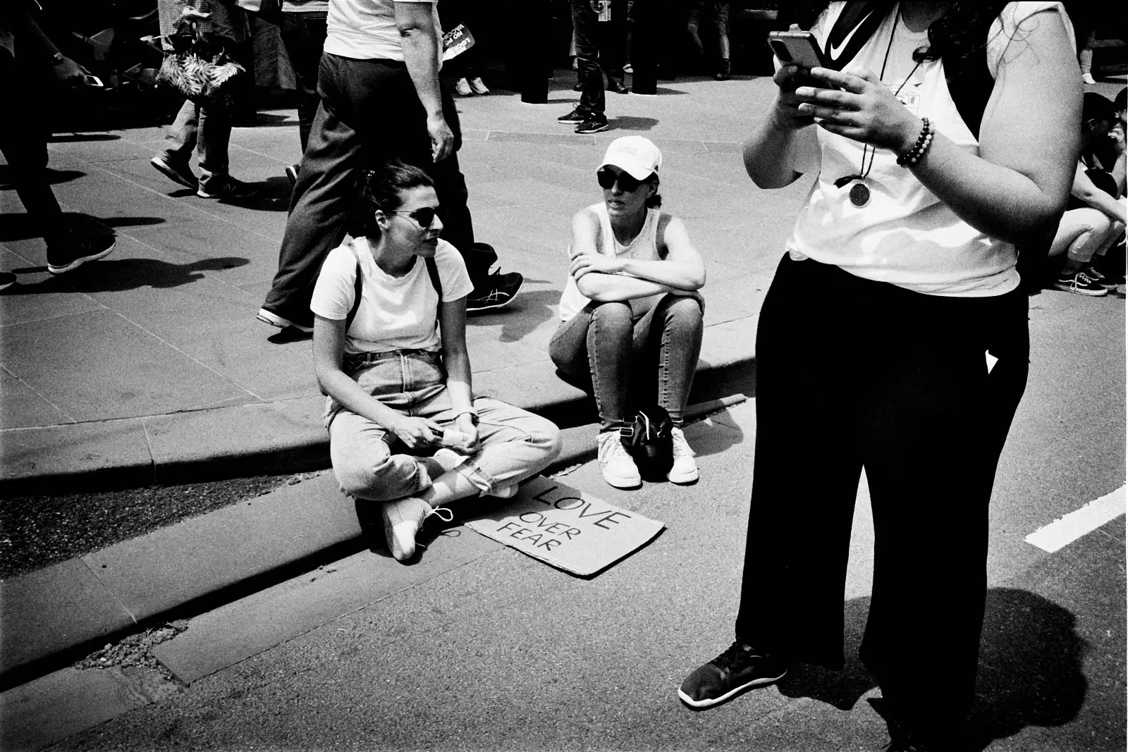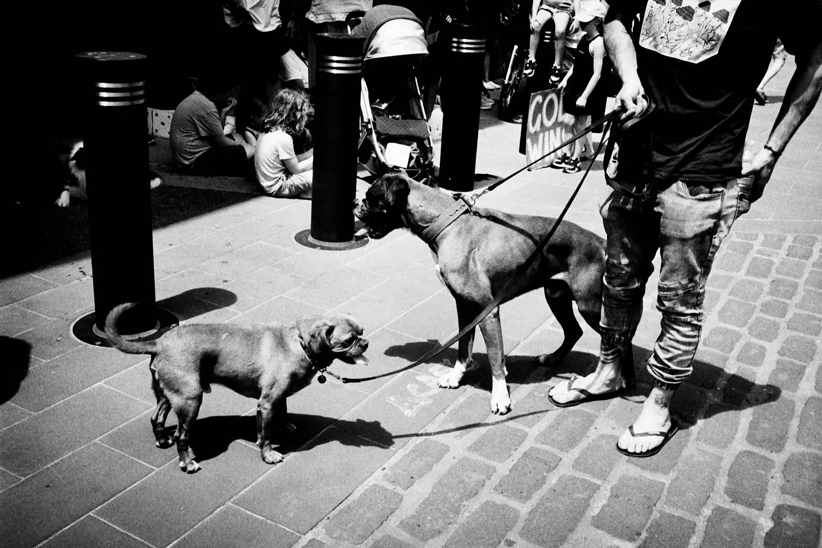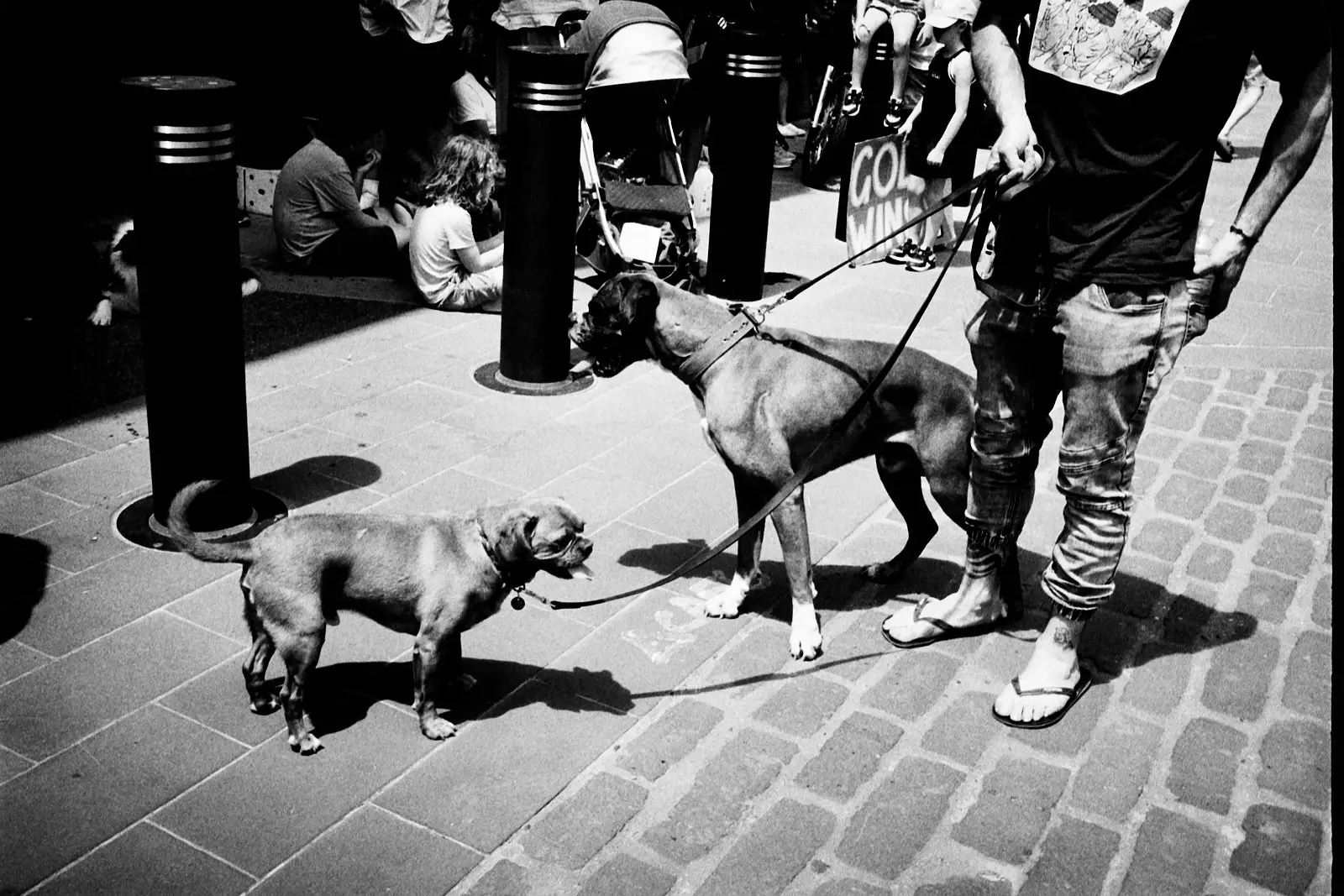 I bolted for a walk right after we arrived. We were staying in Georgetown, and like the tourist that I was, I wanted to go see the stairs where The Exorcist was filmed. This, of course, removed me from the perspective of my son. Suddenly I was a street photographer in a big city. I quickly set about photographing the backs of people’s’ heads and juxtaposing signs with other signs.