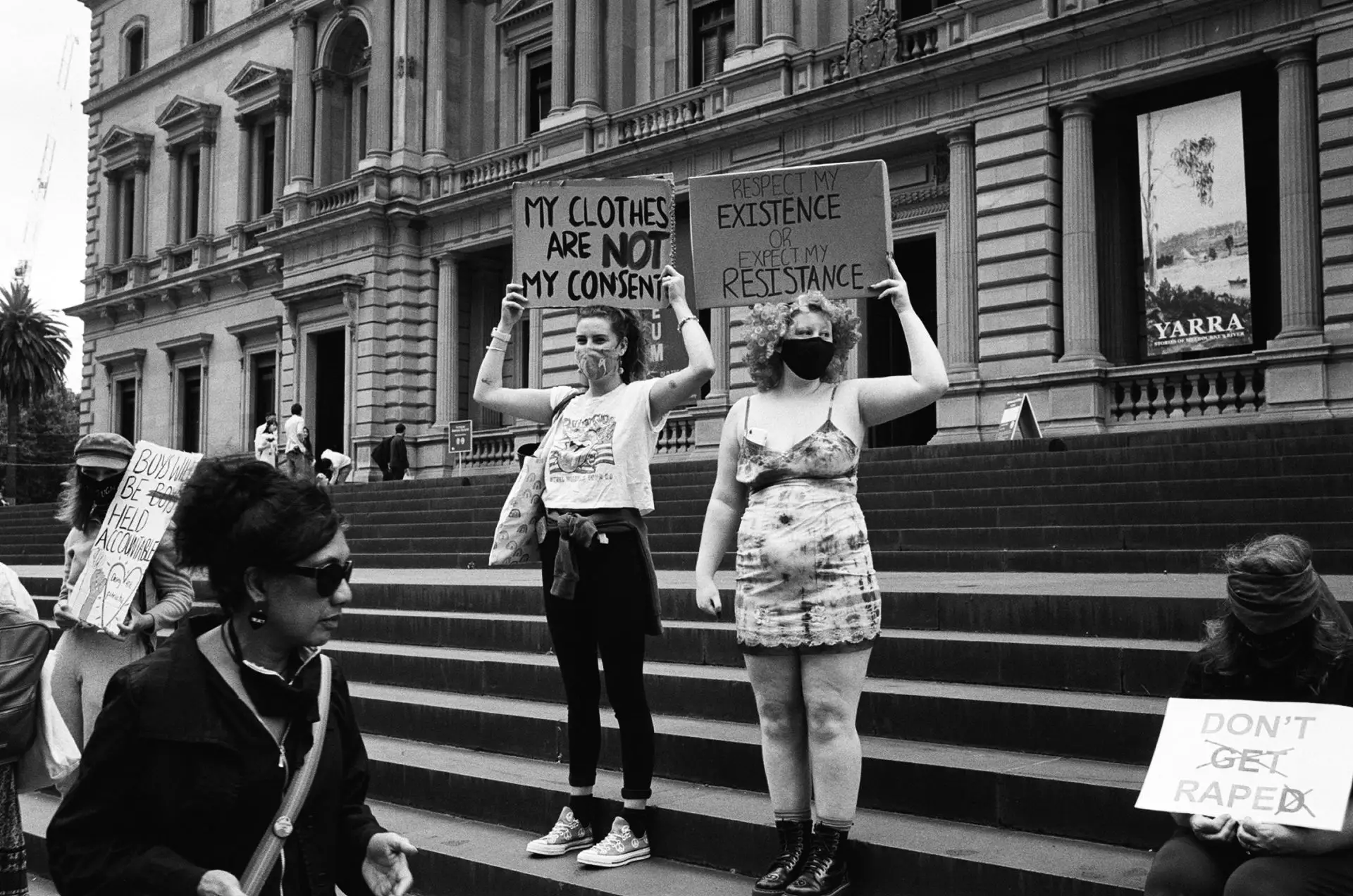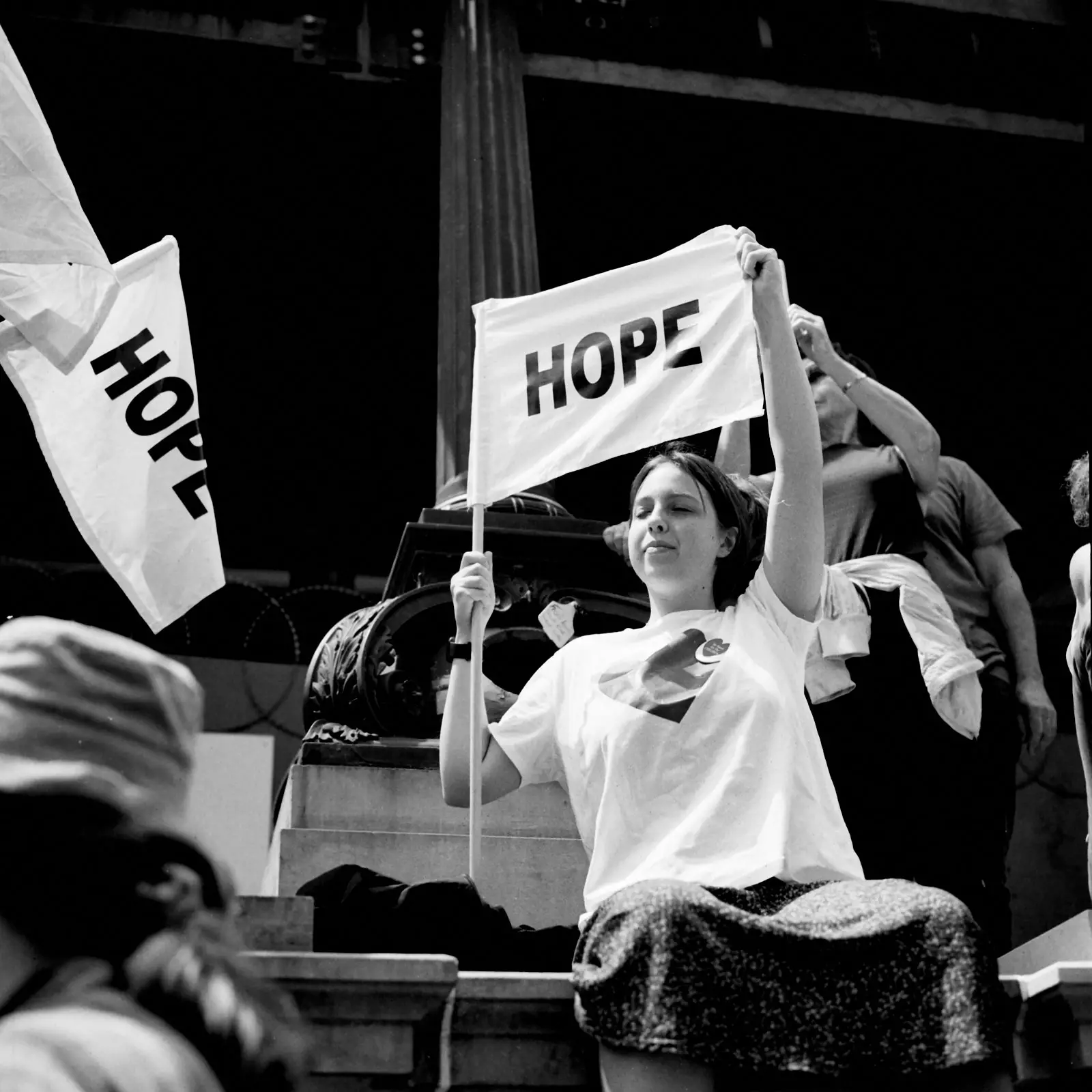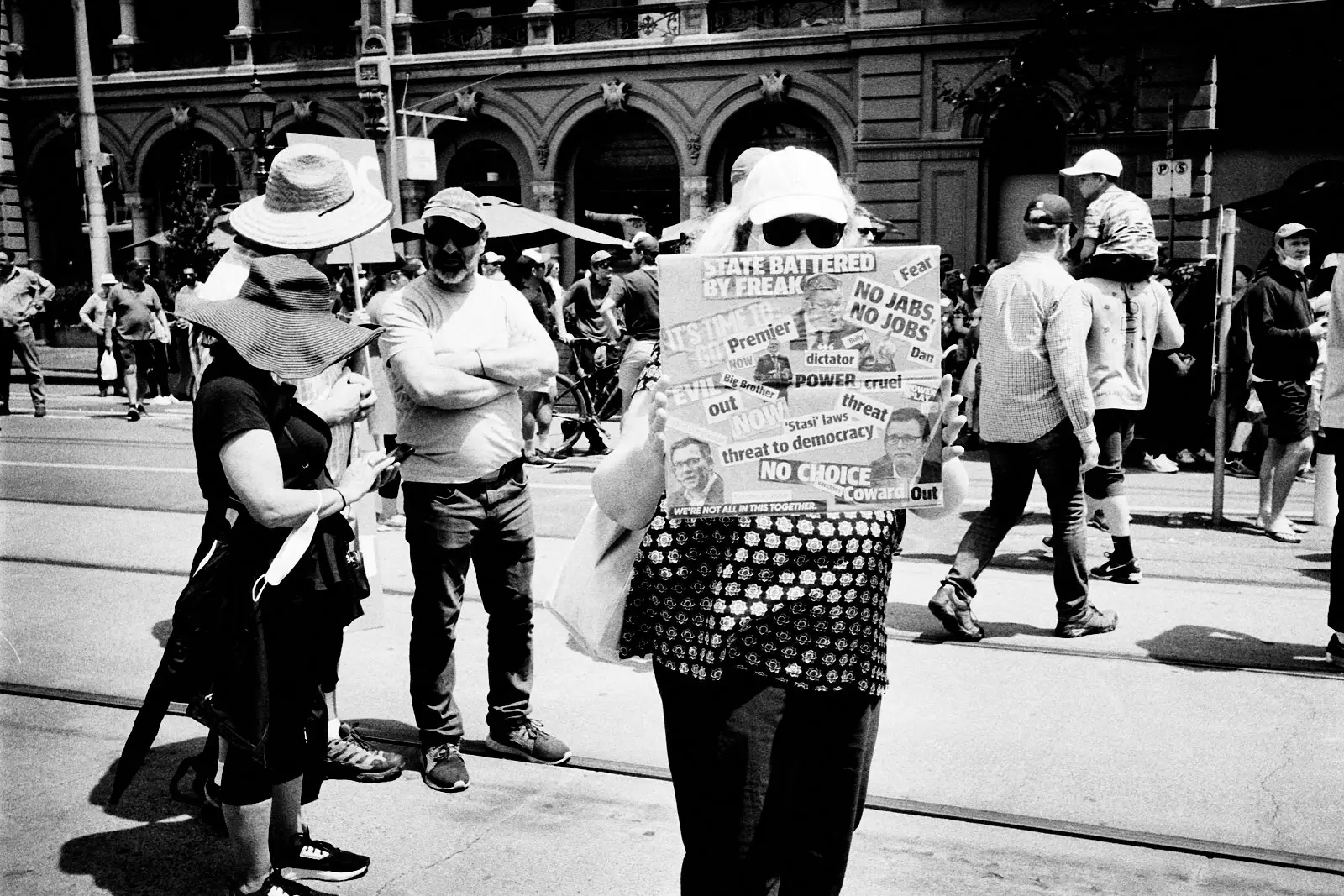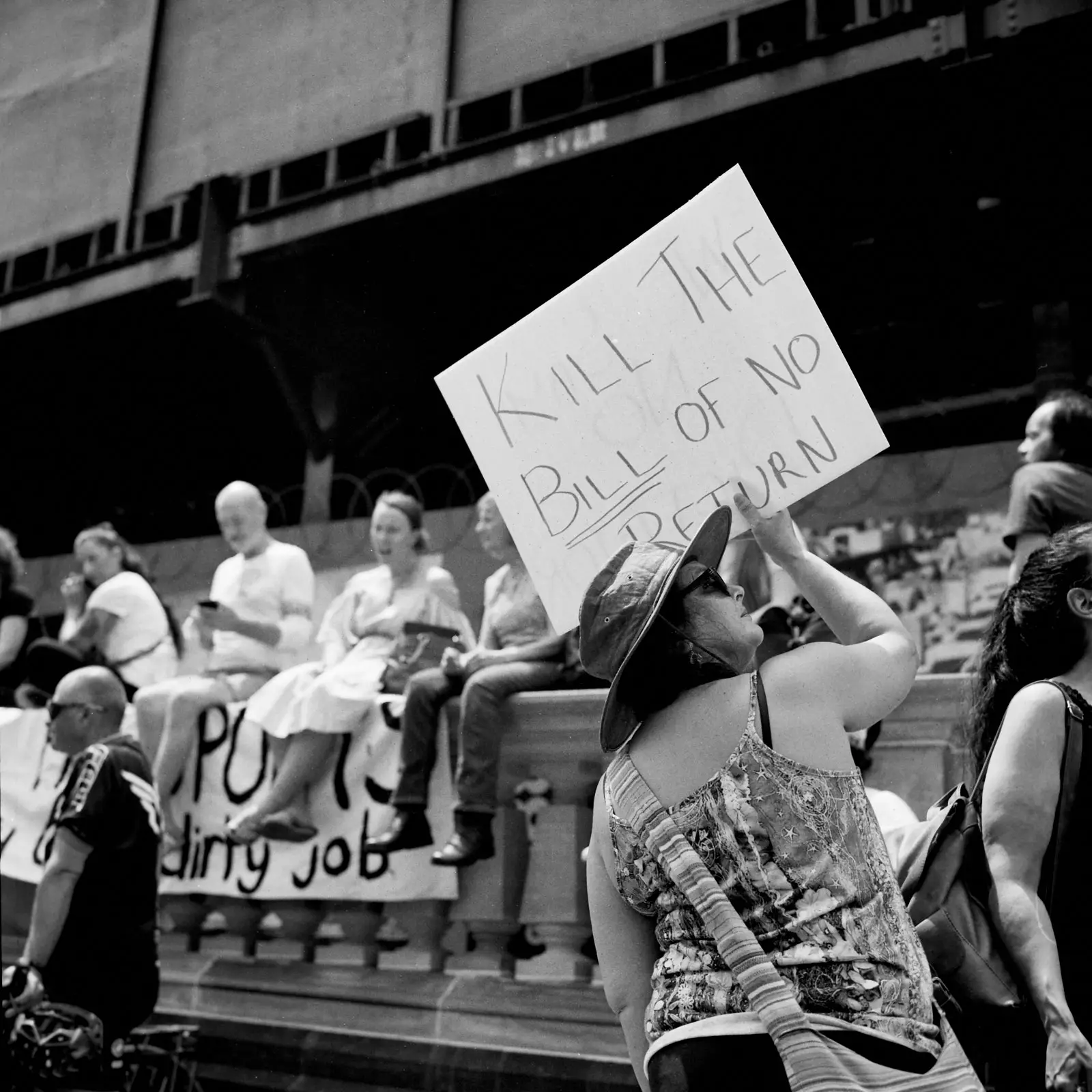 I bolted for a walk right after we arrived. We were staying in Georgetown, and like the tourist that I was, I wanted to go see the stairs where The Exorcist was filmed. This, of course, removed me from the perspective of my son. Suddenly I was a street photographer in a big city. I quickly set about photographing the backs of people’s’ heads and juxtaposing signs with other signs.