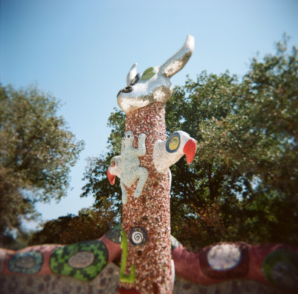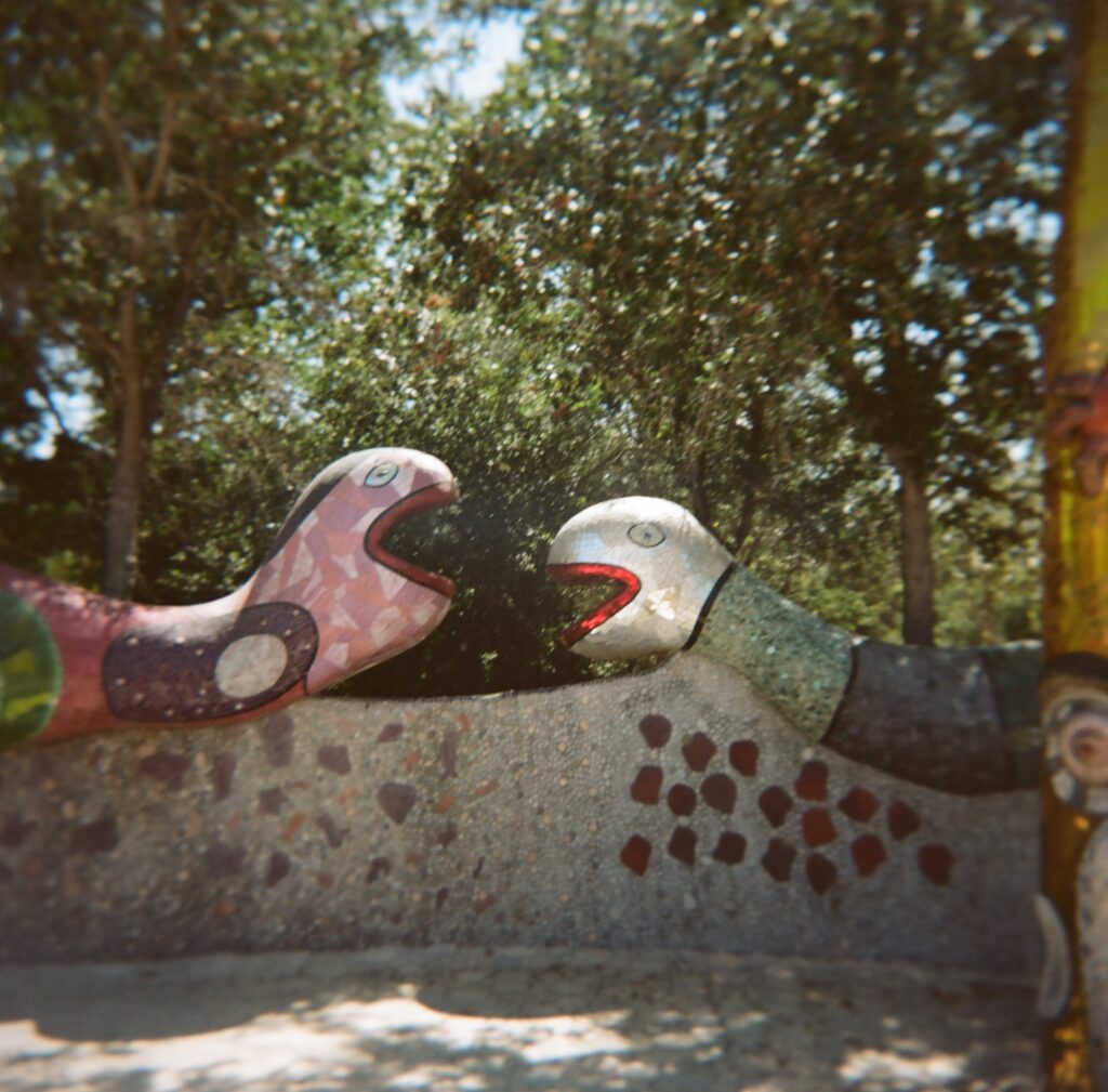 The sculpture was designed and built by a world-famous French sculptor and painter Niki de Saint Phalle. Her mosaics are all over the world.  She came to San Diego for health reasons and put together the large mosaic as one of her last works. For me it is a wonderful piece of art. Truly a breathtaking mosaic taking up a large area. It took 2 years to build. I went out to take Holga pictures to enter in Anna’s Zine called Plastic Perspective.