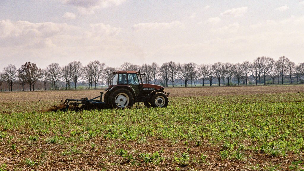After leaving the woodland, I saw this tractor and its driver working in the fields in the spring. Here, too, I have a side view from the front, which has its own charm.
