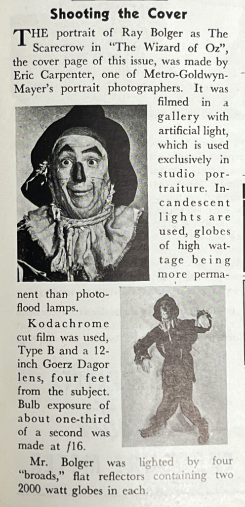 Above: Cover photo of the August 1939 issue of Ray Bolger for it’s feature article on the new about-to-be-released movie The Wizard of Oz