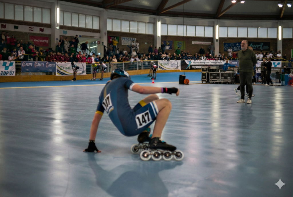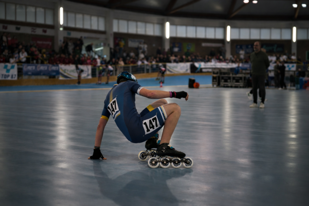 When on an assigment I often take with me a second camera with a vintage lens. This is a way to test old glasses along modern ones, without risking failure. Every now and then, therefore, I switch from the work gear to the personal one to give it a try. Sometimes I get good results, some other times I don’t, like in this shot taken during the 2026 Italian Skating Championship. As it is apparent, I misfocused the skater trying to get up, so the photo turned out as an egregious miss.