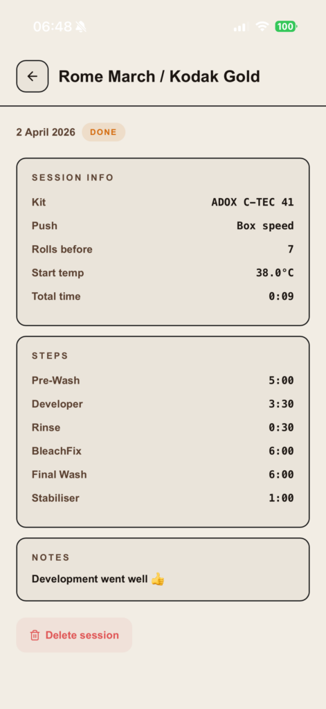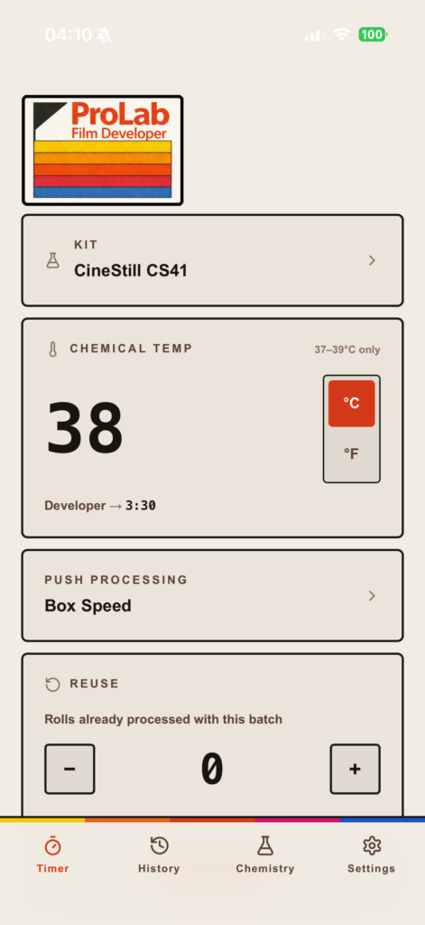 What’s strange is that everyone knows these variables matter. Temperature and chemistry condition are the factors in colour development. But the tools people use completely ignore them. Timer apps assume everything is perfect, including the temperature, which is less important for monochrome but for colour its imperative!
