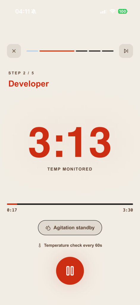 It does what a normal timer doesn’t. It asks you for a temperature reading every minute. If it’s dropped, it adjusts your remaining time to compensate. Not theoretically, in real time, while you’re developing.
