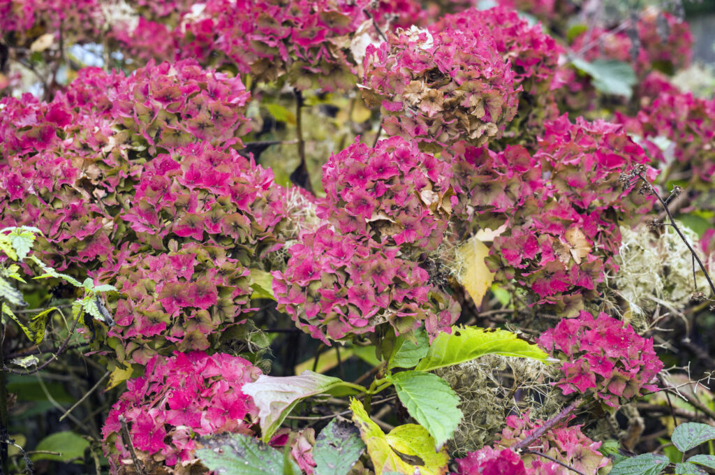 The Hydrangea: I could’ve framed this a thousand different ways but this arrangement appealed as it seemed to catch the bush while it was still colourful but past its best.